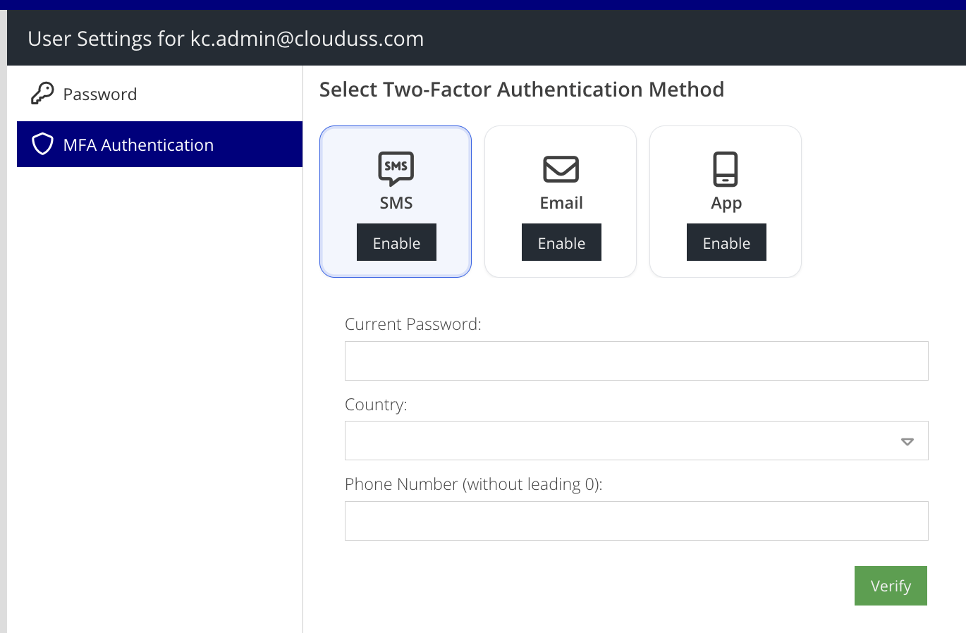- Once verified, the SMS Authentication is active and will be the second factor used during login, unlock or elevated actions.