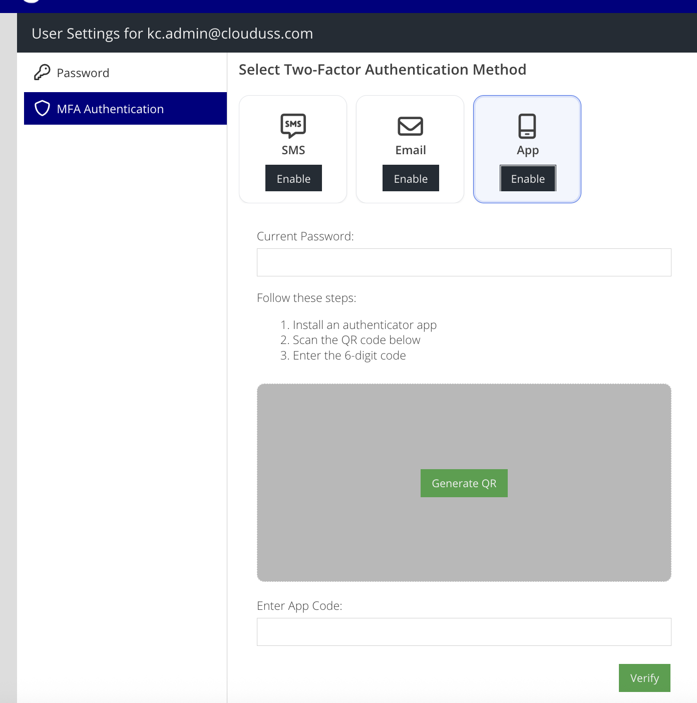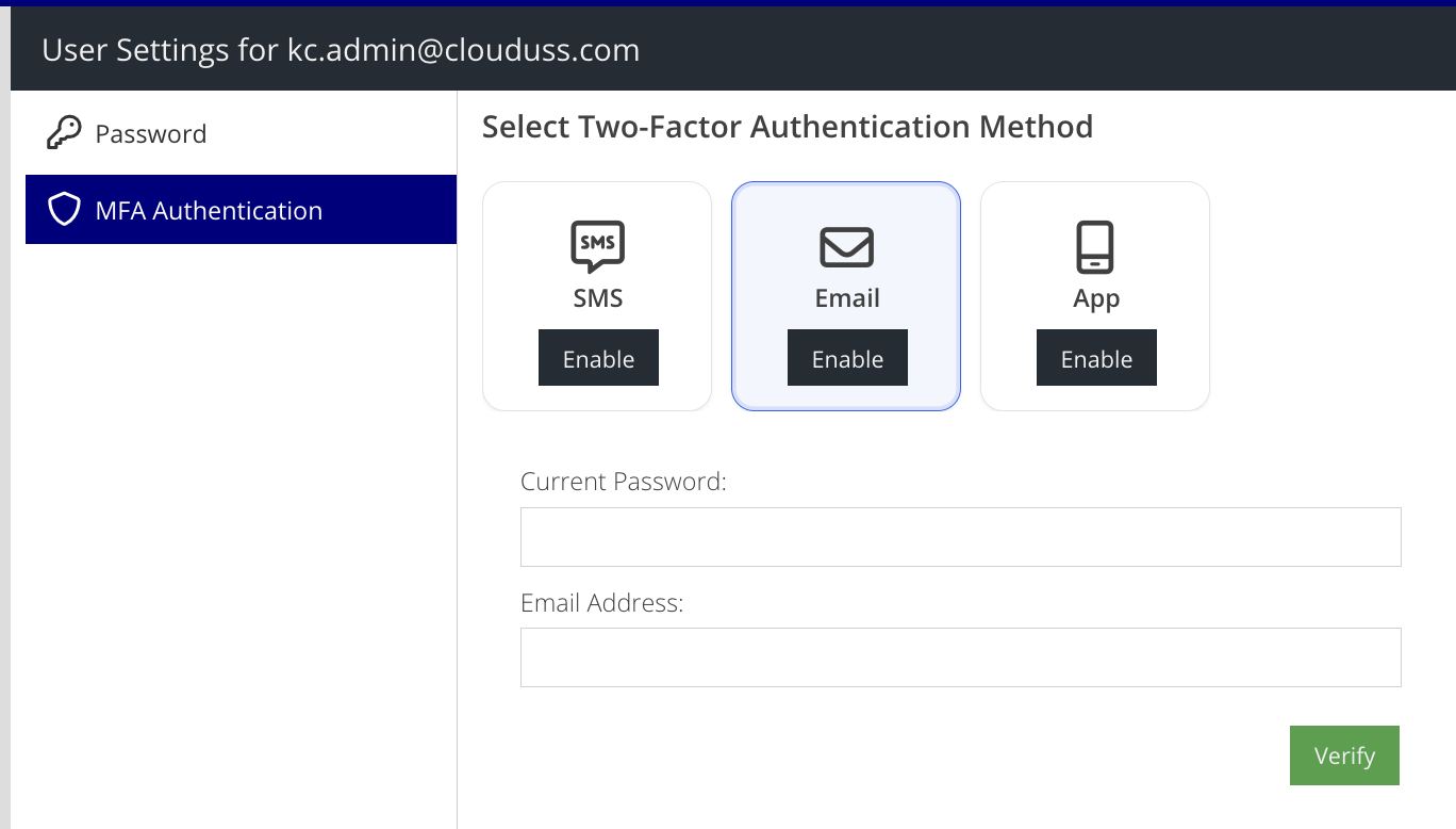 Email tokens are valid for 10 minutes - Once verified, the Email Authentication is active and will be the second factor used during login, unlock or elevated actions.